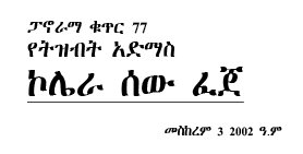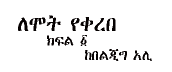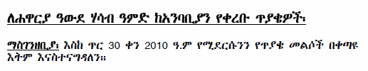 | Memories of a Generation - The Story of Ali Saeed and Other Ethiopian Political Victims; an award winning documentary will be viewed in London On December 12, 2009 at 2:00 PM. More>>> |