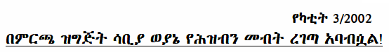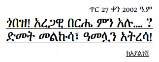 I also say better late than never. Time everyone knew that the Tigrai Front led by Meles Zenawi and others stole money (some 100 million US$) given to the famine victims of Tigrai in 1984-5 and used this to buy weapons while thousands starved to death. The BBC has made it news (March 3) and gotten confirmation from a former leader of the Front who has thus taken some 25 years to admit the truth of the matter.