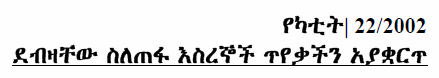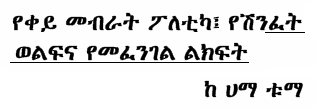 The politics of Eathiopia tend to pull in different directions. It is definitely three-dimensional class, the class of EPRDF led by TPLF, the class of EPLF led by EPDJ and all others with or without EPRP.