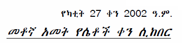 Every New Year has brought more disaster to the people of Ethiopia and it is none other than women who have been forced to bear the brunt of the dictatorship. 2010 has not brought any improvement in the sad plight of Ethiopian women whose rights continue to be trampled upon by a chauvinist regime that pays lip service to rights and equality while pursuing an all round repressive politics.