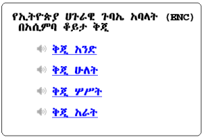 ETHIOPIAN NATIONAL CONGRESS - CALLING FOR INTERNAL PEACE AND RECONCILIATION