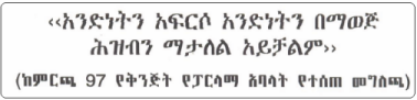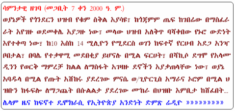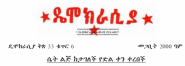 I believe that you are aware that I now have my own web blog dedicated to the struggle. The page is legible in Tigrigna. I came up with such strategy in order to create a common bridge where all Tigrayans can comment and post their political views and opinion.