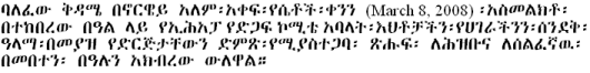 March 16, 2008 03:41 PM---By Tedla Asfaw