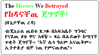 Recent news including foreign media houses reports that the gold deposit under the Ethiopian "National" Bank is found to be fake gold or "fools gold". The value of gold is now $1,000 per ounce and the thieves indeed made good fortune at the expense of poor Ethiopia…………………..