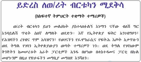 In your letter you say, "The Alliance for Freedom and Democracy (AFD) is an Ethiopian political party formed May 22, 2006 from the Ormo Liberation Front (OLF); the Coalition for Unity and Democracy Party (CUDP); ... to topple the current government of Ethiopia with the Tigray People Liberation Front (TPLF)." We in the CUD emphatically deny this allegation because the CUD leaders were in jail when a few individuals here in the United States met with the so-called AFD for photo sessions. Those individuals had no authority to affiliate with the AFD nor did they have any clearance from the CUD leadership in Ethiopia to affiliate with the AFD. Read More....