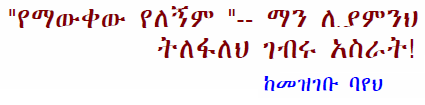 Please post this letter on your website until I come out with a commentary in Amharic (I am not currently on PC with Amharic font) regarding the Ethiopian Free Press Association lead by the Ato Kifle Mulat. Honestly speaking, I am angry, frustrated by the so many of the called Diaspora opposition media.