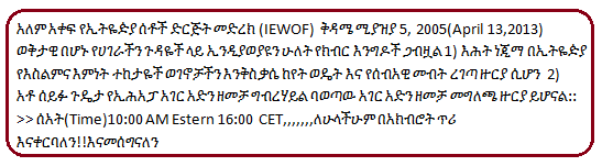 Finote Democracy Voice of Ethiopian Unity Radio 06/01/2013