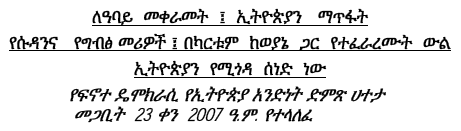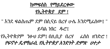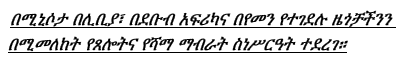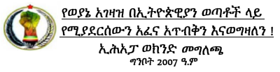 From Durban--Soweto in South Africa up to the desert and beaches of Libya, Ethiopians have been brutally murdered. In South Africa, they were victims of Afro-phobic mobs spurred by irresponsible officials and, in Libya, some 30 of them beheaded and shot dead by the Daesh (IS) fanatics for just being Coptic Christians. The EPRP strongly condemns the murderous Daesh group and Libyan militias who had, in the past, been taking violent actions against Ethiopian refugees.