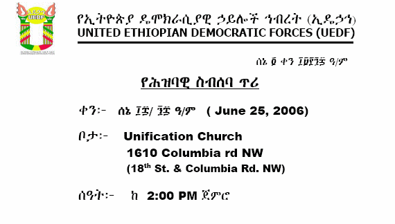 The Ethiopian Community in The Greater Toronto Area & Surrounding Regions organized A Demonstration of Remembrance on Saturday June 10, 2006 to adore the courage of Ethiopians killed by dictatorial regime security forces at the beginning of June 2005.