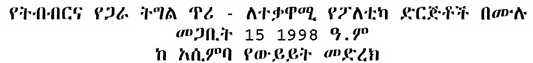 The opposition parties that won the trust of the peoplein the May 2005 elections have no extensive security network, party army, or any large party business empires. These attributes of the opposition parties are assets and not liabilities for Ethiopia and Ethiopians. The people including the party members may be free to support or oppose or to remove the parties from power if they fail to deliver what they promised. Members could freely express their opinion without fear for their lives from their leaders. ....Read More..>