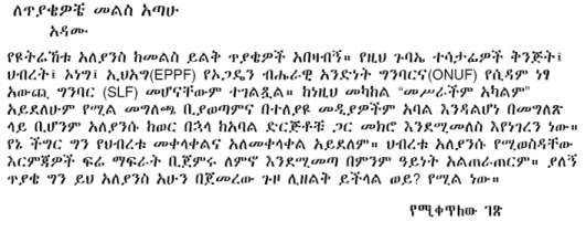 The issue of an all-Ethiopia resistance forum