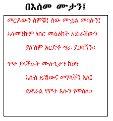 By Obo Arada Aba Shawl (Ethiopian) alias Wolde Tewolde (Eritrean)