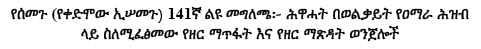 A Plea to revise article E of the Resolution of the European Union of January 21, 2016 on the situation in Ethiopia (2016/2520(RSP)) B8-0091/2016.