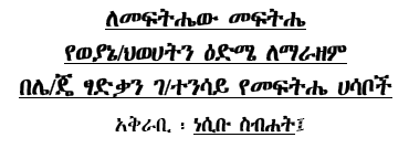By Obo Arada Aba Shawl (an Ethiopian) and Wolde Tewolde (an Eritrean)