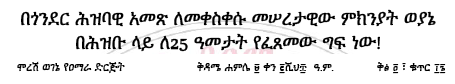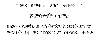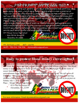 WE CALL UPON ALL FREEDOM LOVING ETHIOPIANS TO SAY NO TO THE WOYANE FESTIVAL THAT IS BEING ORGANIZED BY ALAMUDI SERVANTS IN ALEXANDRIA VA UNDER THE NAME OF AESA ONE!