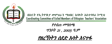 JUNE 20--WORLD REFUGEE DAY THE WORSENEING PREDICAMENT OF ETHIOPIAN REFUGEES