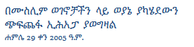 The  violent repression against Muslim Ethiopians has been ratcheted up by the  regime in Addis Abeba. Peaceful Muslim protesters were gunned down in the South  with more than 25 killed, hundreds wounded and more than 1200 others arrested.  Today’s Eid celebration again saw many hundreds of Muslims in Addis Abeba being  beaten and jailed by the regime’s notorious Federal Police.