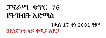 c/o Embassy of the Federal Republic of Ethiopia to the United States