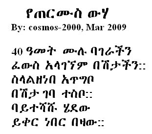 Professor Al Mariam’s ( or Alemayehu Gebre Mariam's) article entitled…The disquieting silence of our sisters......with sentences like “the deafening silence of her sisters..... the untapped power of Ethiopian women, ‘the new Ethiopian woman…shoulder to shoulder suffering the blows of dictatorship..”, belittle the struggle of Ethiopian women and their contribution up to now. The article could be a good lesson on how not to write about things one is completely ignorant about.