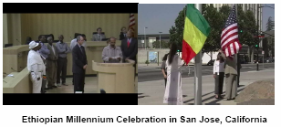 For the third time, the Ethiopian flag is flying high in the heart of the Silicon Valley, at the San Jose City Hall from September 7, 2007 and will remain flying until September 14, 2007 and already declared Ethiopian Week in commemoration of the Ethiopian 2000 Millennium by the City of San Jose in the presence of the Mayor and Council members on August 28, 2007. Read More>>>