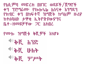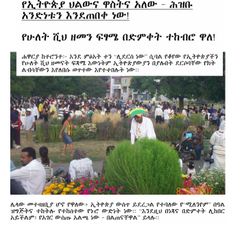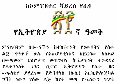 The Ethiopian calendar begins the third Millennium on September 11, 2007 We, concerned Ethiopian women and mothers working for peace, justice, and the development of democracy in Ethiopia, call on all Ethiopians, friends of Ethiopia and all loving people of the world to join us in prayer of Thanksgiving welcoming the New millennium.