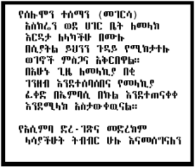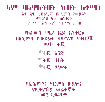 PRAYER USHERING PEACE FOR THE ETHIOPIAN NEW MILLENNIUM