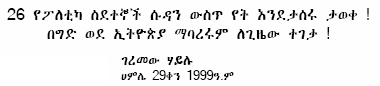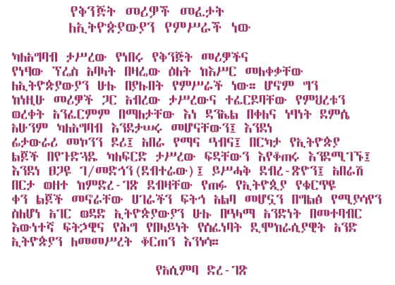 And that having been relieved from the sentences of death and from the agony of imprisonment, the fate of CUD leadership seems to be over. Last week, a new phase of struggle is made. The Team of Debteraw Website has to be commended for bringing forward into the limelight those heroes and heroine Ethiopians/Eritreans who stood for Justice and Freedom for all Ethiopians regardless of ethnicity, nationality or religion.