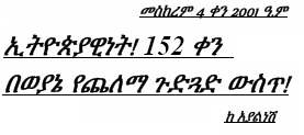 Today, on the beginning of our AEthiopian Millennium new year, I want to present personal histories of struggle of three individuals in the hope that their experience will lead to some lessons to be learned from their Education and Experience (EE). Read More.....