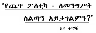 Here is a critical analysis of the current Kinijit political crisis. It is based on a very critical cumulative observation of long duration. The sub-topics included in this analysis are: