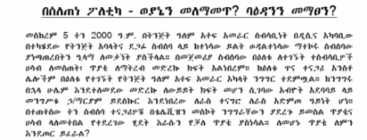 A statement has been posted in the name of CUD on Kestedemena Party’s web site that contradicts Ato Hailu Shawel’s announcement that CUD will not enter parliament. The statement does not bear CUD’s official stamp, and we have confirmed that the CUD council did not authorize the statement posted on Kestedemena’s web site against its chairman.