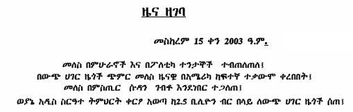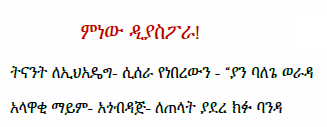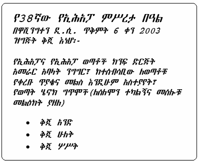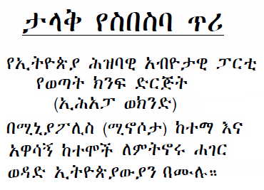 SOCEPP: Two individuals (one in Toronto and one in Ottawa) who have been illegally using the name of SOCEPP Canada have continued to besmirch the name of SOCEPP and have recently associated themselves openly with political factions calling for a political "united front" against the regime in Ethiopia. Read More