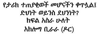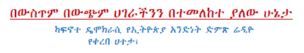 In my short article in Amharic a bit earlier I have tried to highlight the tragedy of the successive Ethiopian dictatorial regimes. Although the brutal dictators and their foreign sponsors are the main forces to blame, many pseudo opposition groups have also contributed to that tragedy by extending the lives of those dictators on power and the sufferings of our people. Sooner or later, however, all of these forces have culminated in great shame. The sad fact of the matter, however, is the failure to learn from past mistakes, and repetition of similar tragedies from regime to regime.