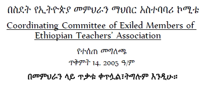 Dear Ethiopian Compatriots all over the world;