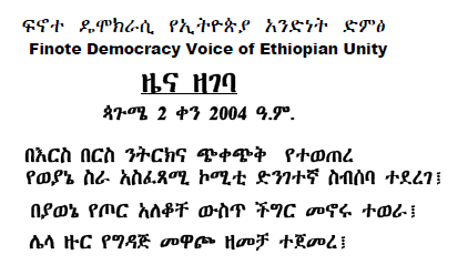 been going on in all fronts since last week. After the news of Woyane and