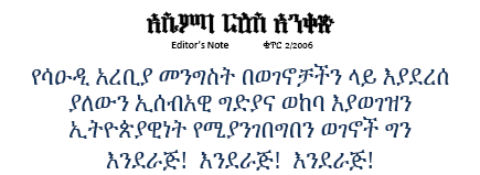 More  than 300 bodies are expected to be retrieved at the coast of Lampadusa as a  result of the disaster that struck a boat carrying close to 500 desperate  refugees from the hell hole that calls itself Libya. Most of the dead refugees  were Somalis and Eritreans and we can imagine that there were some Ethiopians  too as Ethiopians are prisoners in their hundreds in the containers of the  Libyan Desert, left to the mercy of racketeers, sadists and rapists. Ethiopians  have also died on the shores of Yemen and in the hands of modern slavery lords  from Lebanon to Qatar and beyond.