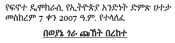TSEGAYE GEBRE MEDHIN, Yishak Debre Tsion, Hagos Bezabih, Belete Amha, Sitotaw Hussein (the latter two were field doctors graduated from the Gondar Health College),Teklai, Azanaw Demile (deported from the Sudan), and Desalegn (Abera keye zeb) were all EPRP leaders and members in the hands of the Tigrai Liberation Front by June 1991 an were disappeared since then. A formrer leader of the Tigrean front and longtime president of the Tigrai region, where they were imprisoned, has now revealed that a hastily set up "organizational court" had condemned them to death and they have been executed. SOCEPP vigorously condemns the brutal murder of these patriots and longtime fighters for democracy.