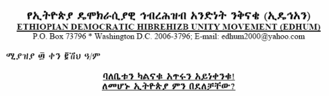 The Movement for New Ethiopia Begins with a Worldwide Peaceful March for Freedom and Justice on May 15, 2008!
