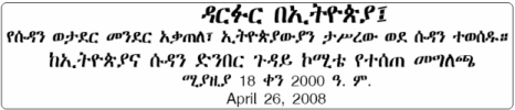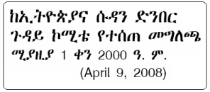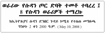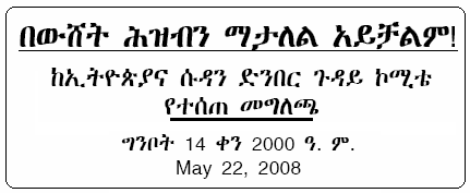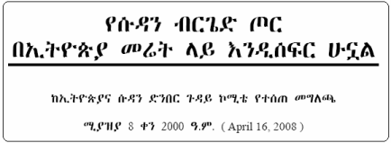 MAY 10/2008 - It is now confirmed that the EPRDF has ceded Ethiopian territory to the Sudan and Sudan has subsequently occupied Ethiopian land and violated the rights of Ethiopian farmers especially in the border regions of Gondar.
