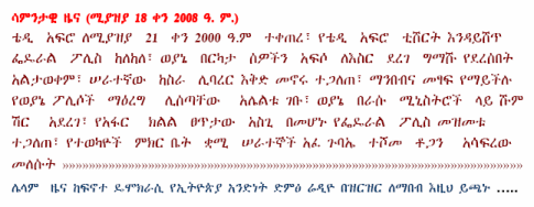 May-June 2005, the EPRDF regime massacred more than 200 peaceful protesters who had said no to its vote rigging and blunt fraud. More than 50,000 Ethiopians were rounded up and taken to Zwai, Dedesa, Bir Sheleko, Shoa Robit and other horrible detention centres. More than 35,000 are still languishing there and dozens have been disappeared.