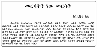 On May 8, 2008 the man who devoted his life to the service of his country as a soldier for the aggrieved and the downtrodden finally gave up his valiant battle with Amyotrophic lateral sclerosis (ALS), a scrooge that kept him bedridden for a couple of years. Kedir Mohammed's death ended his unyielding pursuit and the selfless commitment that he made as freshman at Haile Sellassie I University in the early nineteen sixties.