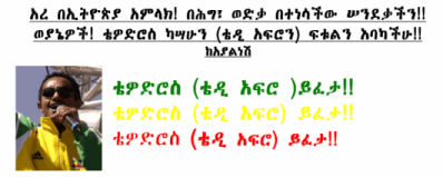 Tedros Kassahun (a.k.a Teddy Afro) and has started railroading him. Officially Tedros is accused of an alleged fatal hit and run (he was detained for this in November 2006 and released on bail) but it is an ascertained fact that the regime is engaged in a political vendetta to punish the singer for one of his famous songs/Yasteseryal/ that criticizes the ruling group.