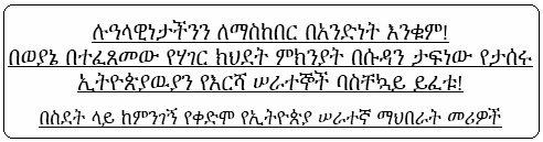 Ethiopians in Oslo took to the streets yesterday (the 1st of May International Labor Day) and participated in the Labor Day procession, in answer to the call by EPRP Norway Section and The Ethiopian Common Forum in Norway for Ethiopians to unite against tyranny and oppression, and to reaffirm and express our solidarity with Ethiopian Workers. Read More>>>