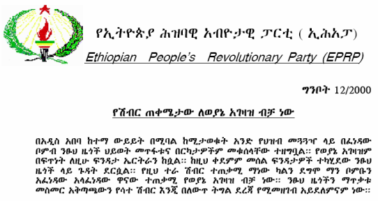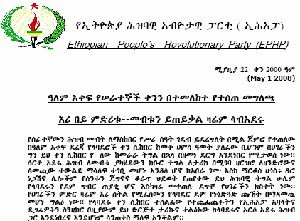 The EPRP and Ethiopians at large have been saddened by the declaration made by the British High Commissioner in Addis Ababa to the effect that Britain has decided to give a 2,5 billion Birr aid to the repressive regime of Meles Zenawi. This is not, of course, the first time that Britain give support to this condemned regime in Ethiopia but Ethiopians have not relented in their call to the British government to stop giving aid and support to a regime that massacres them and has stolen their freely expressed election vote of may 2005.