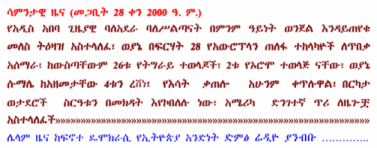 The disastrous invasion of Somlia by the troops of Meles Zenawi has led to indescriable suffering on the part of the fraternal people of Somalia and to countless deaths of Ethiopians. Recent fighting in Mogadishu left dozens of Ethiopians dead and more than a hundred Somalis killed by the indiscriminate shelling and fire of the soldiers of Meles and colonel Abdullahi Yusuf. Worse still, there are credible reports that the Meles soldiers slit the throats of innocent worshippers in a Mogadishu mosque.
