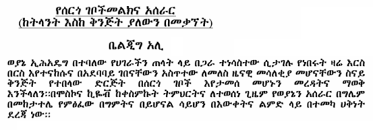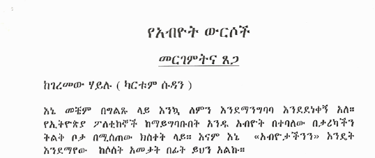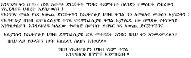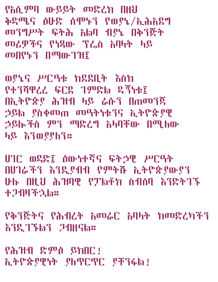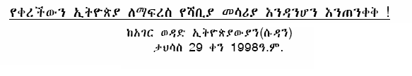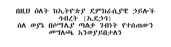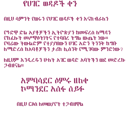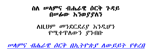 This forum promotes: Solidarity among all Ethiopian opposition groups.
