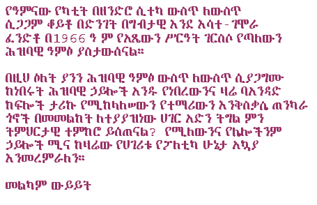 What should the ultimate goal of Ethiopian people struggle be? How can we establish a true democratic system in Ethiopia? What should the role of pan-Ethiopian’s elite in this Endeavour? |